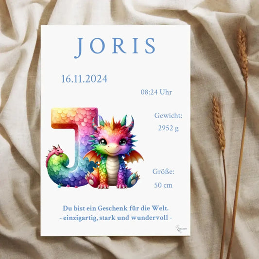 Gestalte dein individuelles Geburtsposter in premium Qualität - ein einzigartiger Blickfang im Kinderzimmer und ein bedeutungsvolles Geschenk. Verewige den Namen, das Geburtsdatum, die Geburtszeit, das Gewicht und die Größe auf einem hochwertigen Erinnerungsstück.